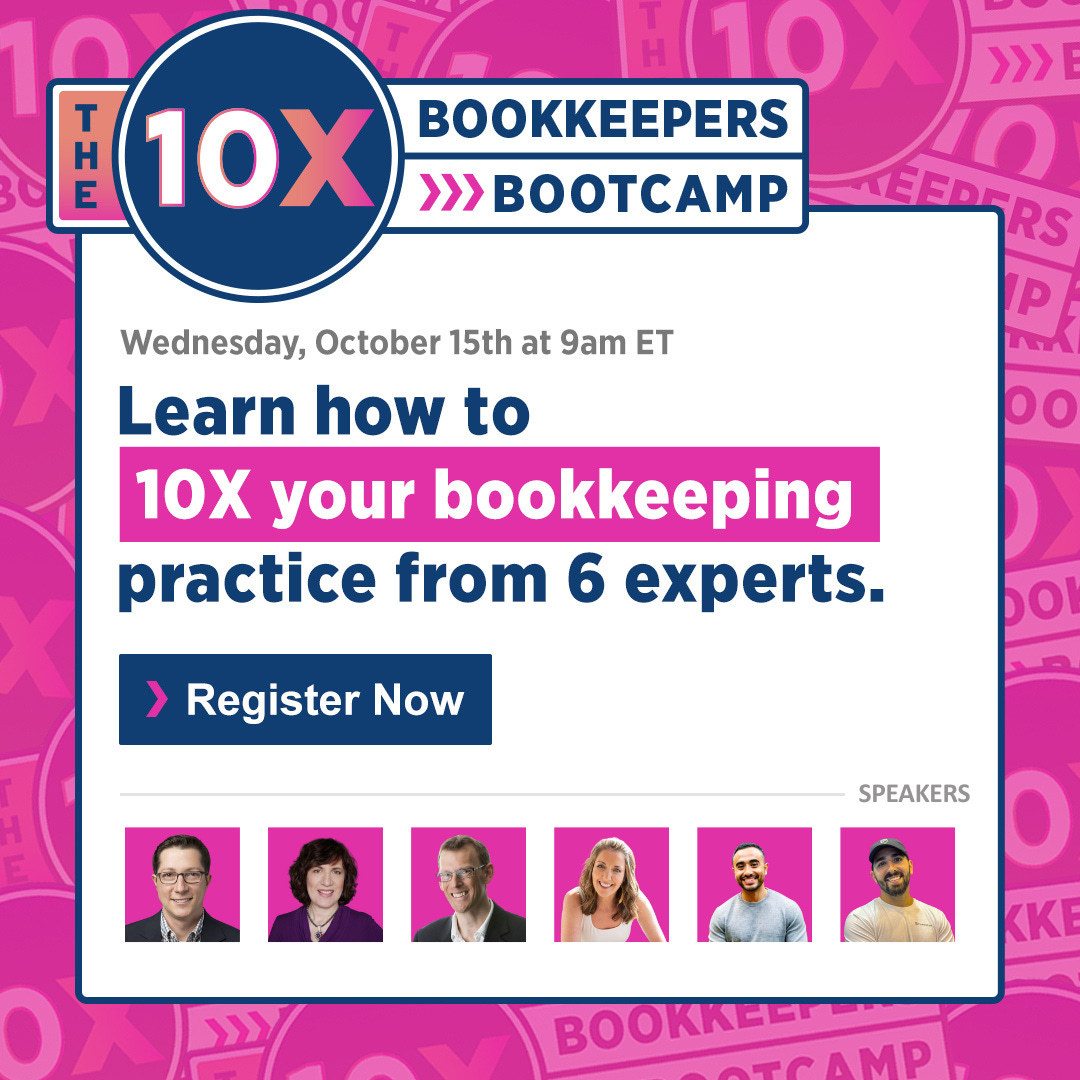 At this 10X Virtual Bookkeeper’s Bootcamp, you'll unpack some of the practices that help firms like yours operate at 10X efficiency, not by grinding harder, but by getting clearer.